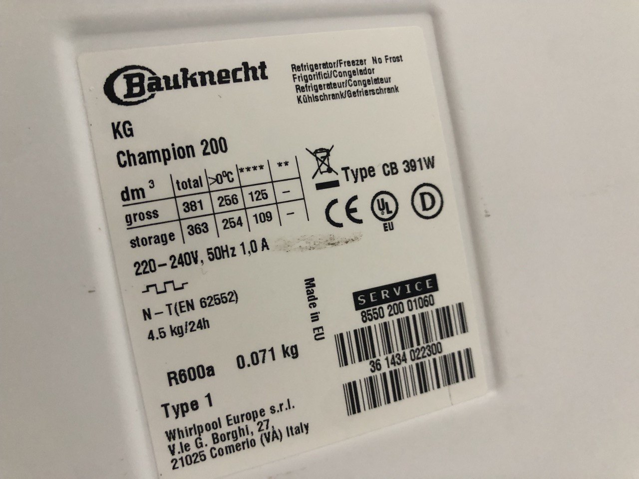 холодильника: 254 літрів